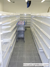 Gôndola de centro com prateleira de 0,30cm e ponta de gôndola com 0,70cm x 1,27cm de altura