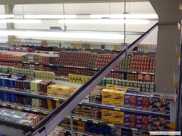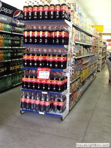 Gôndola de centro baixa com 1,27cm de altura e prateleira base de 0,40cm e níveis de prateleiras de 0,30cm